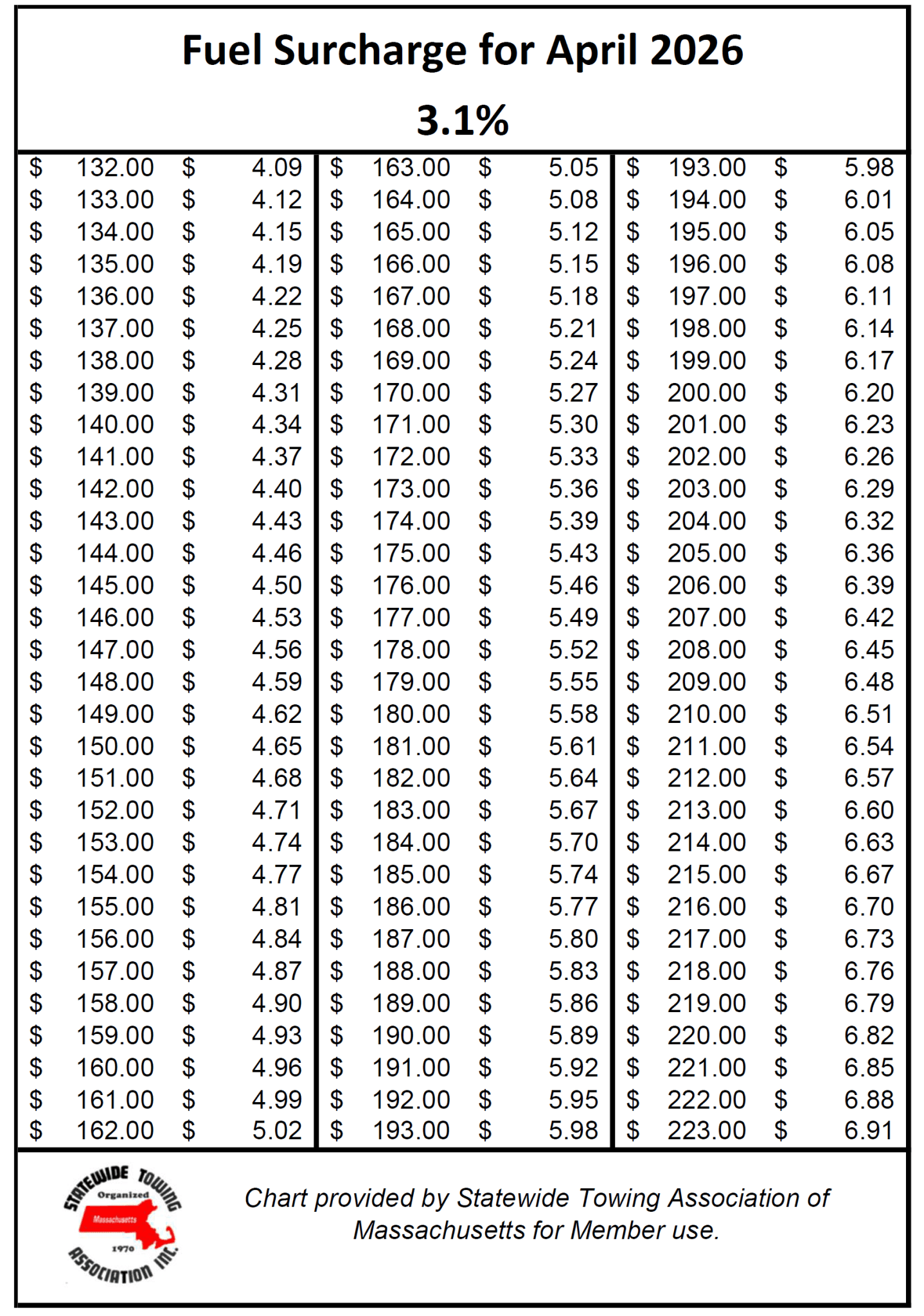 Fuel Surcharge Factor